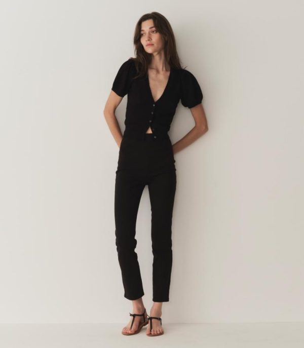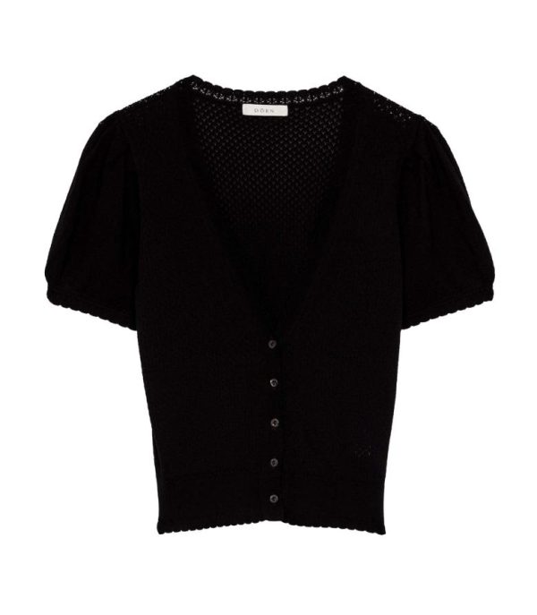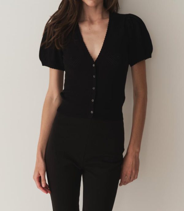 Crafted from the softest viscose-blend pointelle, the ‘50s-inspired Ambrose Cardigan features a plunging V-neckline, short puffed sleeves, and a fitted silhouette. The neckline, cuffs, and hemline are trimmed with scallop detailing.