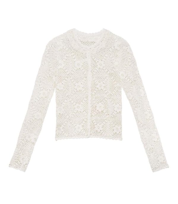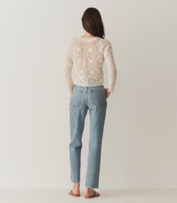 Hand-crocheted in Peru from soft Pima cotton, the DÔEN Ottoline Cardigan features a crew neckline, full-length sleeves, and a fitted silhouette with an intricate allover floral crochet design. Scallop crochet trim adorns the neckline, cuffs, and hemline, while hand-crocheted buttons extend down the front.