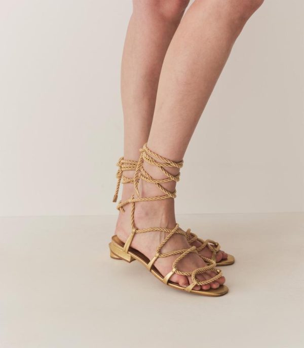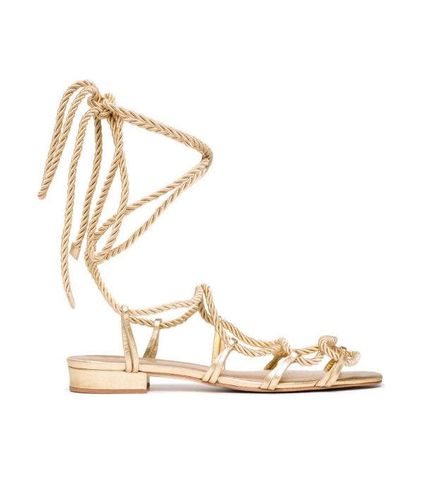 In a supple gold metallic leather, the Castille Gladiator is a ‘70s-inspired statement shoe that’s easily dressed up or down. Pairing nicely with bare legs and ankle-grazing skirts alike, it features a soft leather lining, a low heel, and braided silk cords that can be tied higher or lower on the leg.