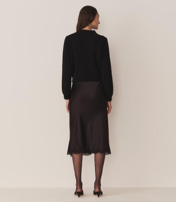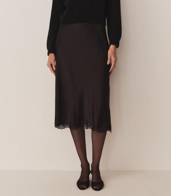 In a buttery silk satin, the Elowena Skirt is a slightly shorter version of our beloved ‘90s-inspired Elowen Skirt. It features a high waist trimmed with elastic scallop detailing, a flowy bias-cut skirt, and intricate floral lace at the hem.