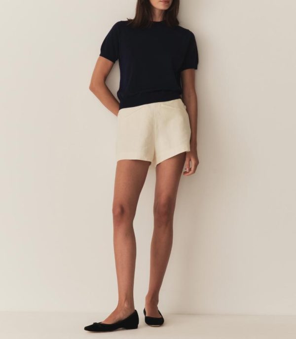 In soft, lightweight 100% merino wool, the ‘60s-inspired Colombe Knit Top features a mock neck, short sleeves, a fitted silhouette, and ribbing at the neckline, sleeve cuffs, and hem.